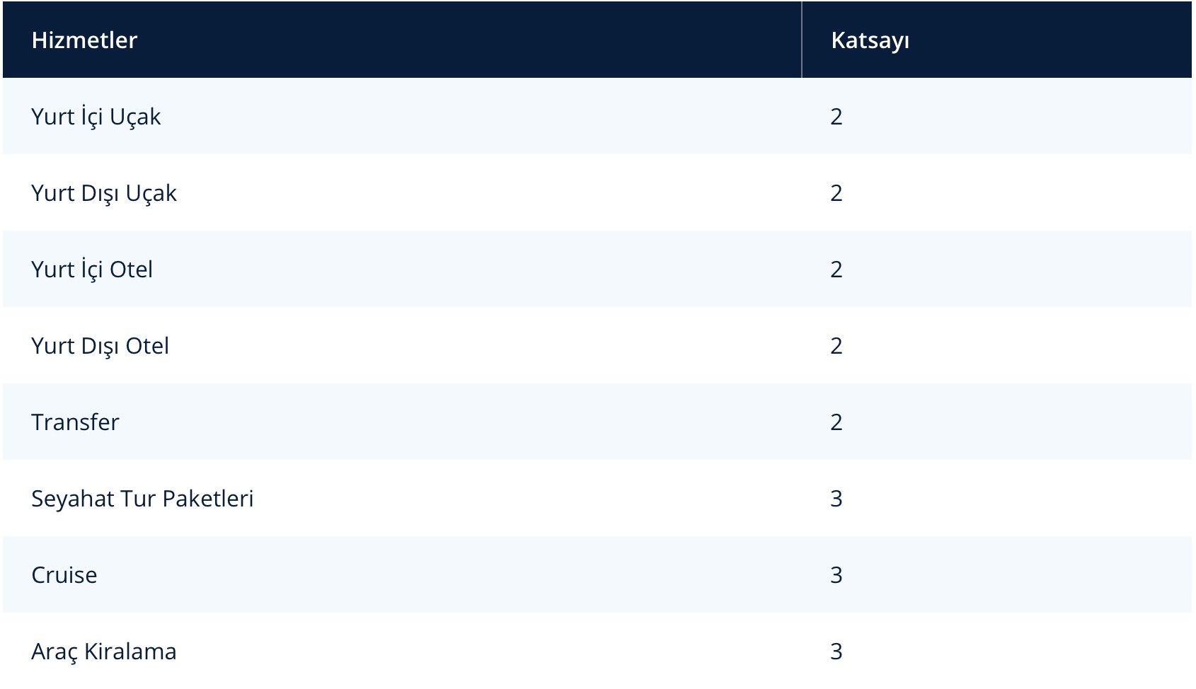 Seyahat TipiDeğerli Kullanım Çarpanı