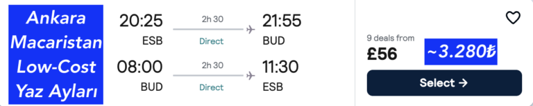 🇹🇷 Ankara ↔️ Budapeşte 🇭🇺 💰 56£ (~3.280₺) 🔥