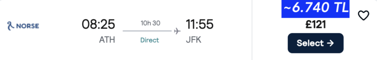 Tek Yön >>> 🇬🇷 Atina – New York (JFK) 🇺🇸 Amerika biletleri çoook ucuza 121£~6.740₺ ‘den 🔥🔥🔥