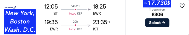 🇹🇷 İstanbul – New York | Washington D.C. 🇺🇸 gidiş dönüş uçak bileti 💺 306£ ~ 17.730₺ 🔥🔥