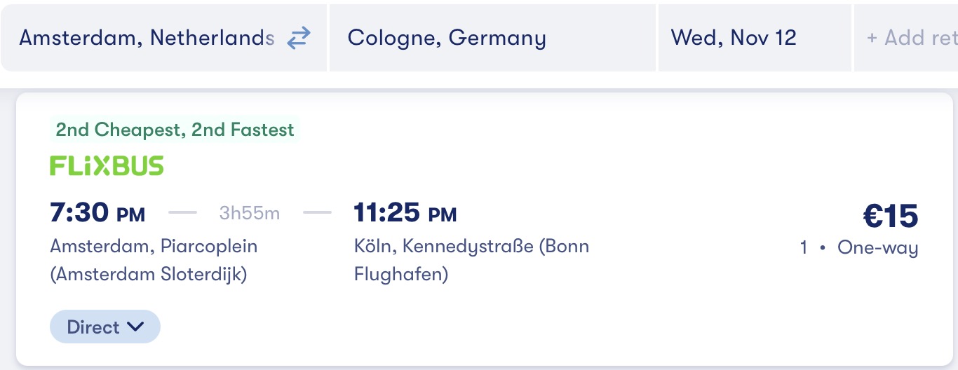 BURADA detaylarını anlattığım konudaki siteden otobüs biletini 15€’ya tren biletini ise 20€’ya alarak Köln’e ulaşabilirsiniz.