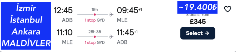 🇹🇷İstanbul | İzmir | Ankara – Male🇲🇻 (Maldivler) için KAS-ARA-OCA-ŞUB-MART uçak biletleri 345£~19.400₺ listelendi! ✈️🏝️