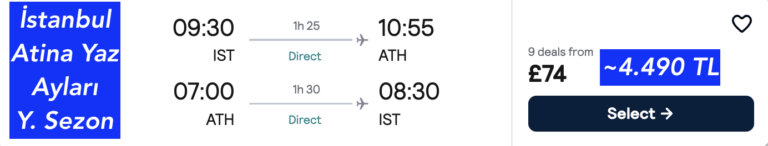 Yunanistan gidiş dönüş ucuza uçak bileti 74£~4.490 ₺ ‘den