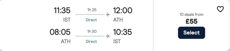🇹🇷İstanbul – Atina 🇬🇷 Yunanistan gidiş dönüş ucuza uçak bileti 54£~3.075₺🔥🔥’den başlıyor