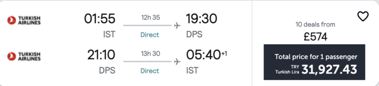 🇹🇷 İstanbul – 🇮🇩 Bali | Aktarmasız uçak bileti gidiş&dönüş 574£~31.927₺ 🔥🔥🔥