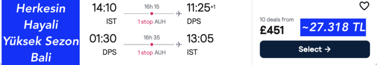 🇹🇷 İstanbul ✈ Bali 🇮🇩 1 Aktarmalı