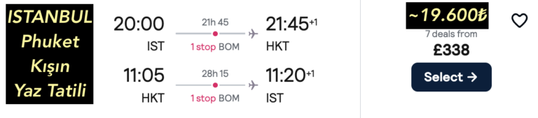 🇹🇷 İstanbul ✈️ 🇹🇭 Phuket 🔁 gidiş dönüş