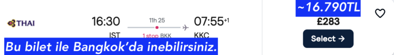 ➡️ Yine aynı IST – Bangkok uçağına