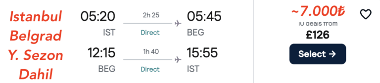 🇹🇷 İstanbul ✈️ Belgrad 🇷🇸 gidiş dönüş uçak bileti