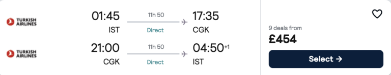 🇹🇷 İstanbul – 🇮🇩 Cakarta | Endonezya | Aktarmasız gidiş dönüş ucuza uçak bileti 454£~27.000₺ ‘den 🔥🔥🔥