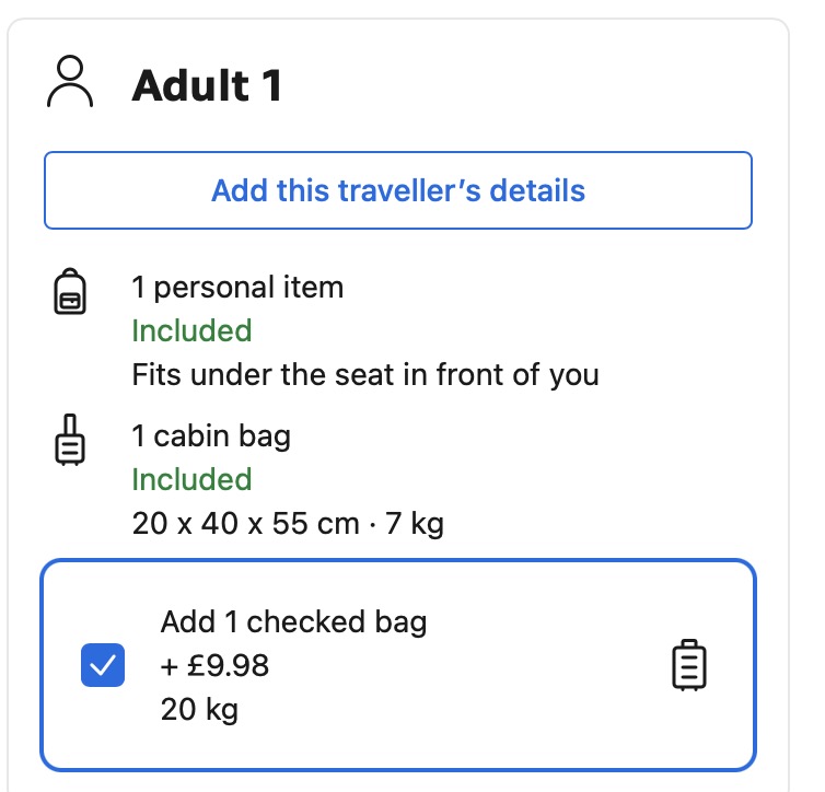 - Sadece 10£ ödeyerek 20kg bagaj alabilirsiniz (Nasıl Satın Alınır bölümünü okuyunuz)