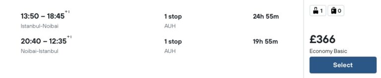 Liste üzerinden ETIHAD seçerek ilerleyiniz. Etihad sitesi açıldığında ana sayfaya geri dönüp biletinizi tekrar aratın ve basic değil “value” seçeneği olan 40kg bagajlı özellik için +10$ ödeyerek satın alın.