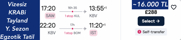 🇹🇷İstanbul ➜ 🇹🇭Krabi gidiş dönüş ucuza uçak bileti 288£~16.000₺ 🔥🔥🔥 ~19.000₺ arası