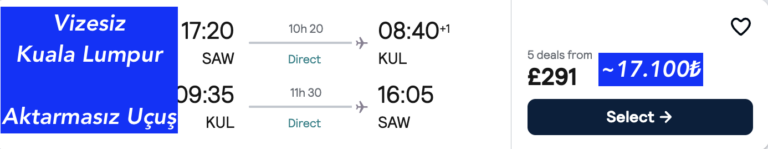 Gidiş ✈️ Dönüş → 🇹🇷 İstanbul – 🇲🇾 Kuala Lumpur ucuz uçak bileti → 291£ ~ 17.100₺ 🔥🔥
