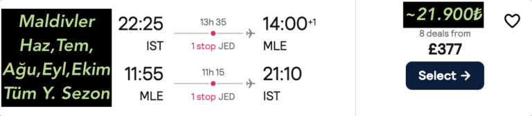 🇹🇷 İstanbul – Maldivler 🇲🇻 🌴🏝 377£~21.900₺ 💰🔥🔥🔥