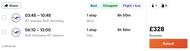 🇹🇷 Istanbul – 🇩🇪 Münih | Nürnberg (Business C.) gidiş dönüş 328£~19.500₺ dir. 📉✅
