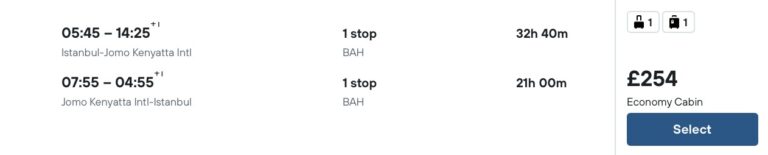 (Kenya) Gidiş Dönüş 25+7kg bagajlı, ikramlı kısa/uzun aktarmalı biletler 254£~15.230₺