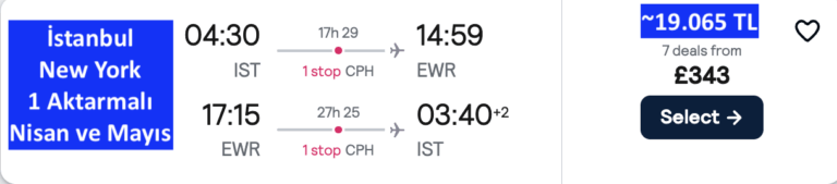 🇹🇷 İstanbul – New York 🇺🇸 Amerika, Danimarka aktarmalı (gidiş&dönüş) 343£~19.065₺ 🔥🔥