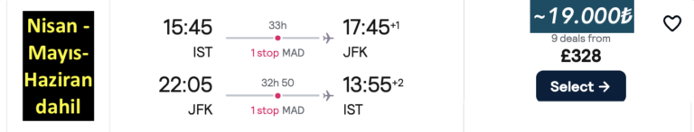 🇹🇷 İstanbul → 🇬🇧 Londra (aktarma) → 🇺🇸 New York