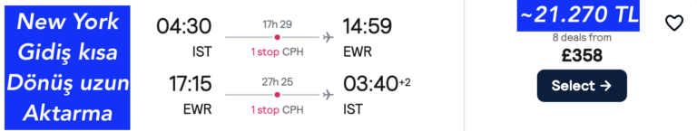 1 AKTARMA SAS ile NEW YORK BİLETLERİ 358£~21.270₺