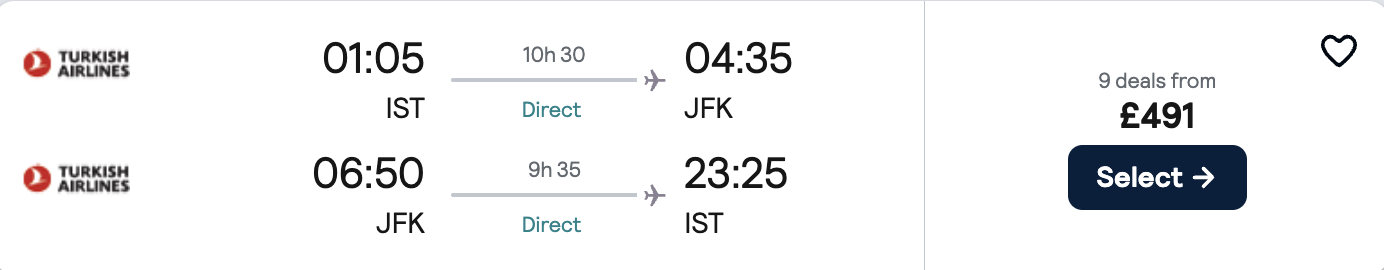 ✈️ 🇹🇷 İstanbul → 🇺🇸 New York