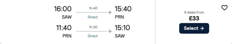 Kosova’ya gidiş dönüş ucuza uçak bileti 33£~1.980₺