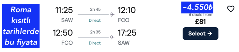 🇹🇷 İstanbul ✈ Roma 🇮🇹 İtalya gidiş dönüş ucuza uçak biletleri 81£~4.550₺ 🔥🔥