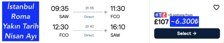 🇹🇷 İstanbul – Roma 🇮🇹 gidiş & dönüş ucuza uçak bileti 107£~6.300₺ 🔥