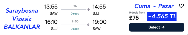 🇹🇷 İstanbul ✈ Saraybosna 🇧🇦 Bosna-Hersek gidiş dönüş  75£~4.565₺ 🔥🔥