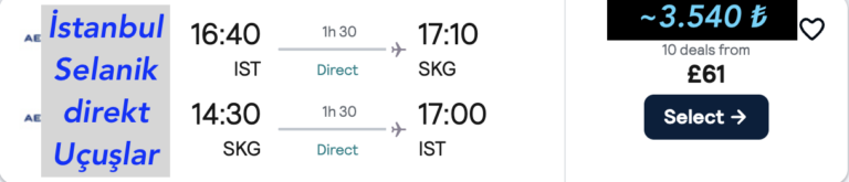 🇹🇷 İstanbul – Selanik 🇬🇷 Yunanistan uçuşları gidiş dönüş 61£~3.540 ₺ 🔥🔥 dir.