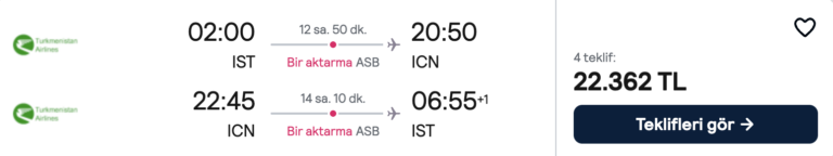 🇹🇷İstanbul – Seul 🇰🇷Güney Kore gidiş dönüş 1 (kısa) aktarmalı ucuza uçak bileti 22.362₺🔥🔥🔥