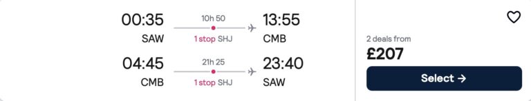 (Sri Lanka) gidiş dönüş uçak bileti: