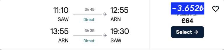 🇹🇷 İstanbul ✈ Stockholm🇸🇪 İsveç gidiş dönüş ucuza uçak bileti 64£~3.652₺🔥🔥