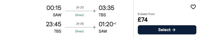 Gürcistan gidiş-dönüş ucuza uçak bileti 74£~4.370₺