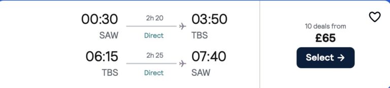 🇹🇷 İstanbul – Tiflis 🇬🇪 Gürcistan gidiş-dönüş ucuza uçak bileti 65£~3.625₺🔥