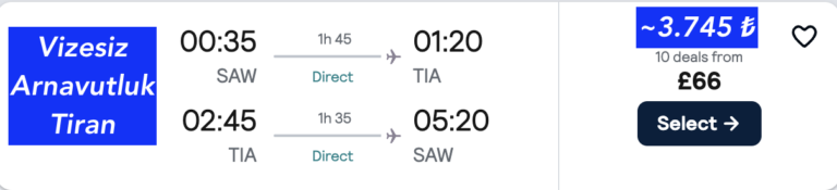 Arnavutluk gidiş dönüş ucuza uçak bileti 66£~3.745₺ dir