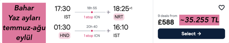 🇹🇷 İstanbul – Tokyo 🇯🇵 Osaka – Japonya (gidiş & dönüş) ucuza uçak bileti 588£~35.255₺ 🔥🔥