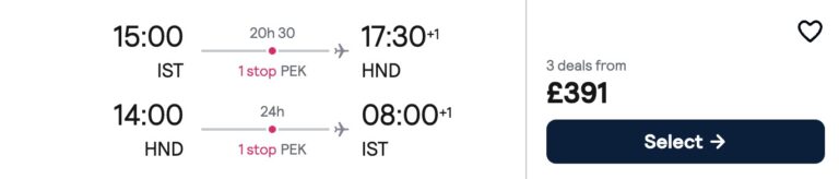 Japonya gidiş dönüş ucuza uçak bileti 391£~23.750₺
