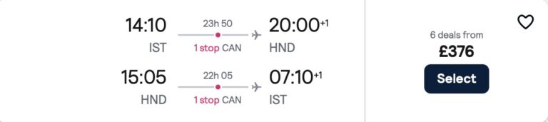 🇹🇷 İstanbul – Tokyo 🇯🇵 Japonya gidiş dönüş ucuza uçak bileti 376£ ~ 21.100₺ 🔥🔥