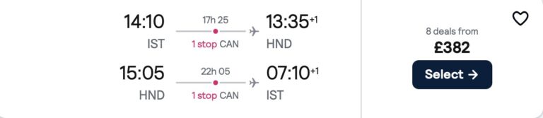 🇹🇷 İstanbul – Tokyo 🇯🇵 Japonya gidiş dönüş ucuza uçak bileti 382£ ~ 21.270₺ 🔥🔥