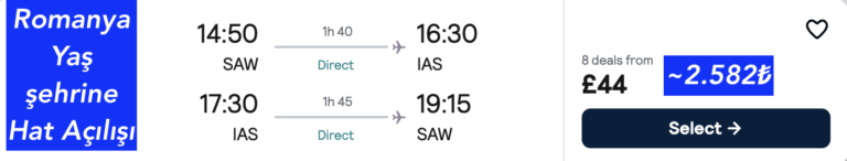 🇹🇷 İstanbul (Saw) ✈ Yaş 🇷🇴 (Romanya) gidiş dönüş 44£~2.582₺ 🔥🔥