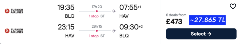 THY ile 🇮🇹İtalya – 🇹🇷İstanbul – Havana🇨🇺Küba  IST aktarmalı gidiş dönüş ucuza uçak bileti 473£~ 27.865₺ 🔥🔥🔥