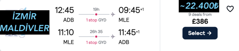 ✈️ Gidiş–Dönüş fiyatlar 386£ ~ 22.400₺ bandında.