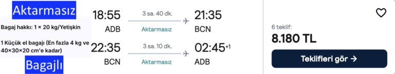 🇹🇷İzmir – Barcelona 🇪🇸  (İSPANYA) gidiş dönüş uçak bileti 8.180₺ 🔥