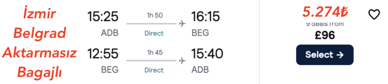 🇹🇷 İzmir ✈️ Belgrad 🇷🇸 gidiş dönüş uçak bileti