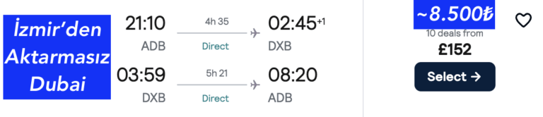 🇹🇷 İzmir – 🇦🇪 Dubai gidiş dönüş ucuza uçak bileti  152£~8.500₺🔥