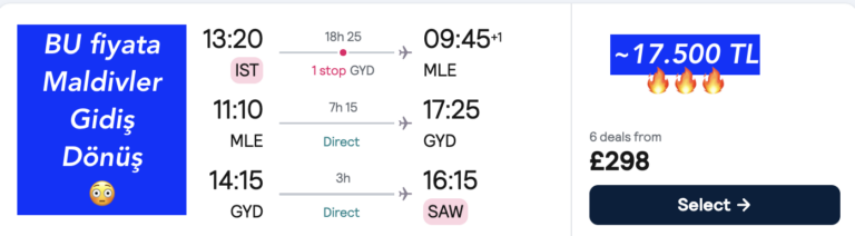 İZMİR gidiş İstanbul’a dönüş Maldivler alternatif >> 15 Mart Pazar – 19 Mart Perşembe
