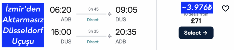🇹🇷 İzmir ✈ Dusseldorf 🇩🇪 Almanya’ya  | Aktarmasız >> gidiş dönüş ucuza uçak bileti 71£~3.976₺