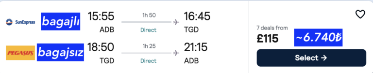 🇹🇷İzmir – Podgorica🇲🇪 Karadağ gidiş dönüş ucuza uçak bileti 115£~6.740₺ ‘den..