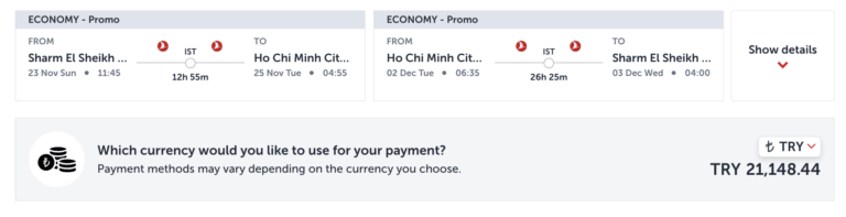 THY ile Şarm El Şeyh ➜ İstanbul ➜ Ho Chi Minh (Vietnam)